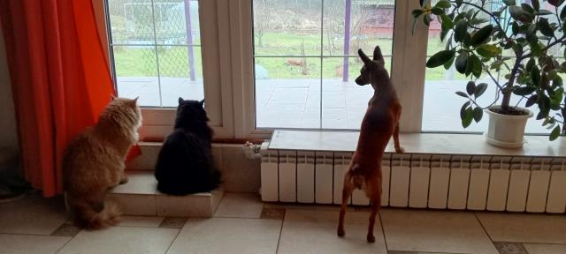 Классные фотки! Коты такие - подготовившиеся зиме ;) И стройняшка Олли на их фоне - статуэтка!