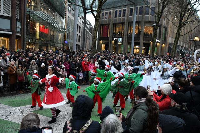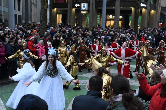 Вчера ездили в центр на Рождественский парад. Народу было море. Парад посмотрели, погуляли, шмальцкухен съели и домой)