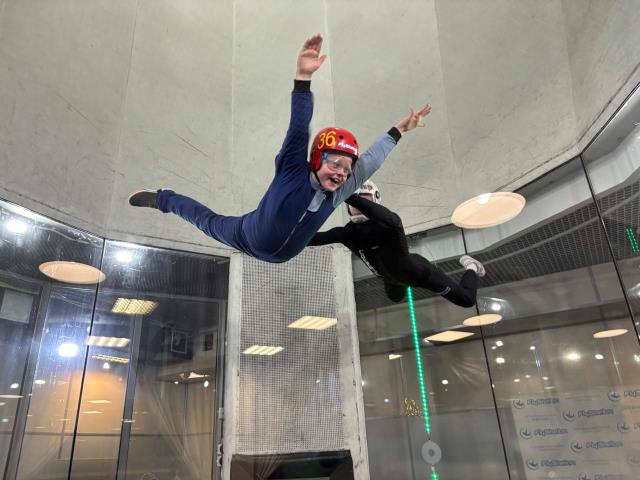 Водили мелкого летать в аэротрубе. Ему понравилось.
