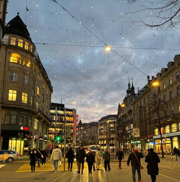 В Цюрихе с четверга сверкают иллюминации и витрины. В хотьково на красиво перестроенной центральной площади установлена ёлка.
