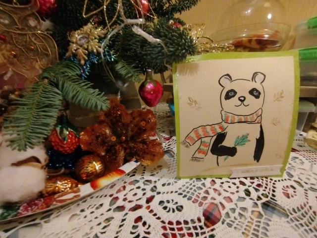 О! я тоже сейчас заглянула в почтовый ящик и обнаружила там открытку от Анны - милую пандочку в полосатом шарфике :) Анна, спасибо огромное! Сейчас поставлю ее к ёлочному букету на столе