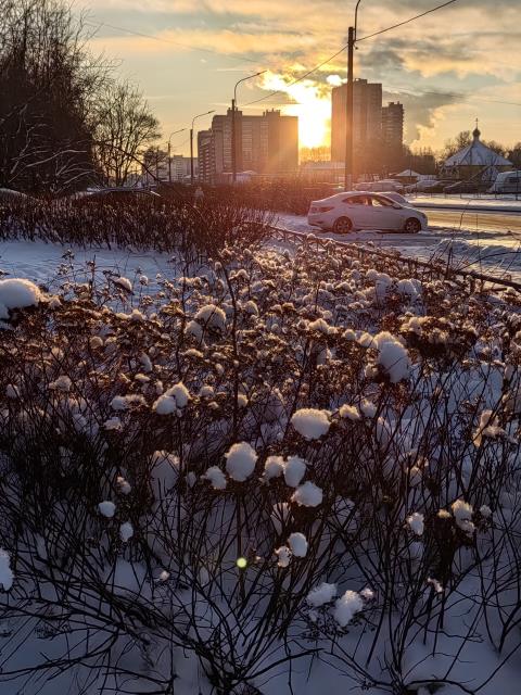 Сначала выдали немного снега 31-го, продержался он ровно до того, как все желающие "отстрелялись" ракетами и xлопушками. 1-го было просто серо... а 2-го поздно вечером снова пошел снег, и шел без перерыва больше суток... Сегодня с утра был "мороз и солнце, день чудесный!" - а к заxоду солнца опять тучи набежали, посмотрим, добавится ли снега к завтрашнему утру.