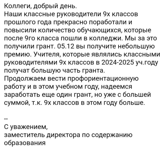 Так нам про грант за птушников завуч написала. Это и удивительно. Других грантов наша школа не заработала. Не за что. Результаты по прошлому году провальные.