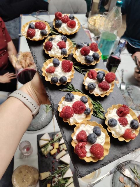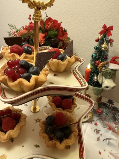 Традиционные новогодние корзиночки с заварным кремом и ягодами