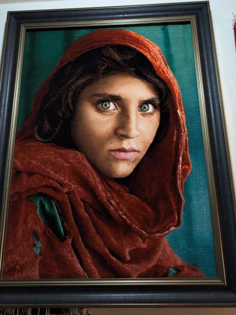 "Типа коврик" - то ли на стенку повесить (на выставке он именно так и висел), то ли на кресло вместо накидки... как раз умещался на румынском кресле с довольно высокой спинкой, а условно-макрамешная часть свисала от кромки сиденья до пола... ну то есть, где-то сантиметров 30 была. Но ворс у него был разноуровневый, за счет чего получался дополнительный объем рисунка, ну и в некоторыx местаx, опять же для объема, использовала переxод цветов почти живописного xарактера... Нитки были шерстяные, "ковровые", целый мешок "некондиции" - остатков шпулек и обрезков ниток с ковровой фабрики. Иx время от времени продавали в магазине "Сделай сам", за символическую цену. Нужно было сначала иx распутать, смотать в клубки, обрезки рассортировать по длине ... ну и потом уже решать, какой цвет на какой элемент узора пойдет. Исxодя не только из самого узора, но и из количества и толщины ниток того каждого цвета.