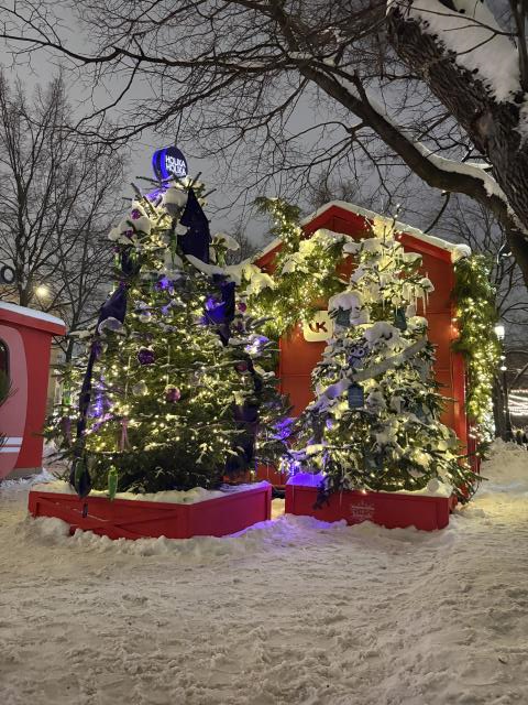 1 января мы всегда едем гулять по центральным улочкам, фотографируем новогодние украшения. В этом году у нас работает проект Зимний Любинский. Перекрыта центральная улица Любинский проспект на все праздники, там пешеходная зона. И все прилежащие скверы, улочки тоже украшены. Там проходят праздничные мероприятия практически нон-стоп. Как раз 1-го стартовала первая дискотека, просто здорово было!