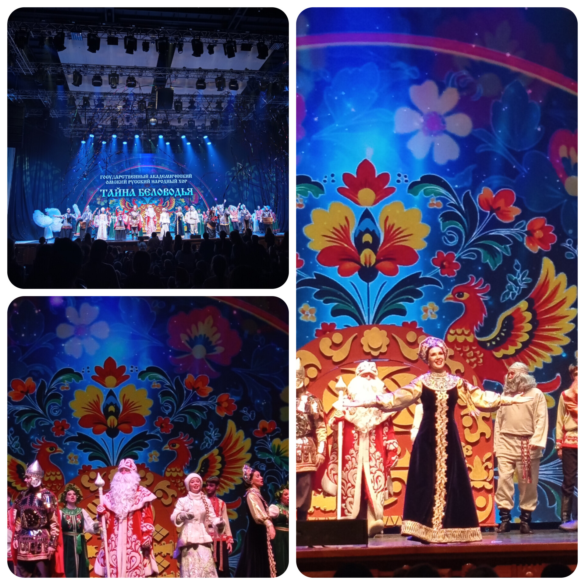 В Концертном зале невероятная постановка нашего Омского народного хора Тайны Беловодья. Совершенно грандиозный спектакль, ребята невероятно талантливые. Все такие регалии Государственный Народный просто так коллективам не дают.