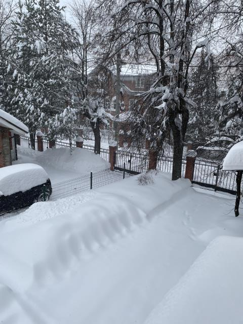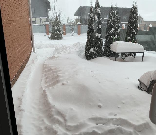 У нас и сейчас сильный снегопад. Утром снегоуборщиком и лопатами почистили дороги и площадки. Все соседи дружно вышли с лопатами:)