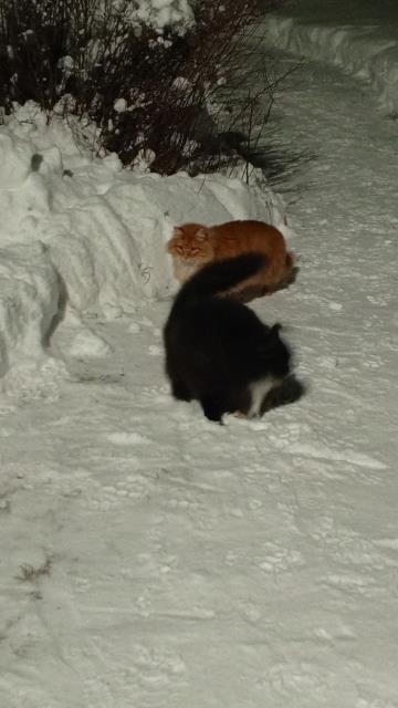 котики окна такие любят:) сидят, и смотрят на собак в снегу:)))