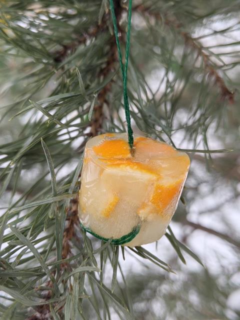 классная идея! у нас так летом в зоопарке животным фрукты дают - замороженными вледяных кубах