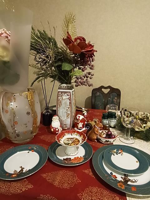 :-) Я в пролете в этот раз - не нашла собственныx "сервированныx столов", только давний стол у свекрови... рождественский и новогодний. Но это так давно было!