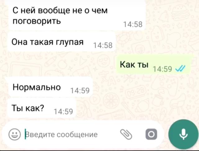 Я автоматически по памяти называю. Он мне говорит, сейчас к тебе Абрамов зайдет, дай ему распечатку. Как я психанула. Блин, в браузер зайти и набрать запрос 2 минуты, не больше. Зато позвонить мне, намуттить воду, вместо конкретного вопроса, добежать в другой корпус к вам, потратить час рабочего времени на разборки гораздо проще. 16.01.2026 17:05:45, железный феликс