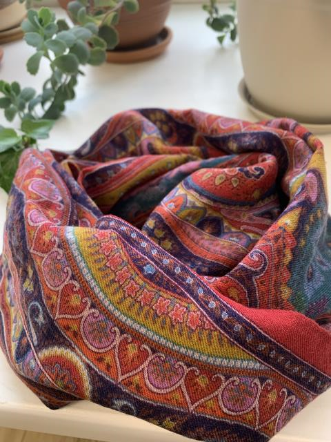 Я больше люблю шелковые платки-каре. Зимой они тоже хорошо грееют. Есть разные: расписные по шелку, брендовые, память о бабушке, сувенирные.