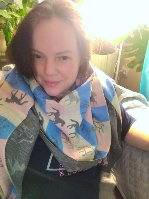 У меня платки павлово-посадские три штуки, два шарфа зимних, но ничего не ношу мне неудобно.