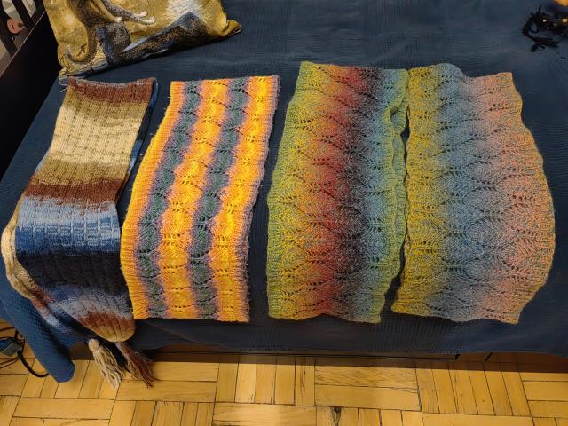 я наконец добралась до своих шарфиков, хотя среди них есть и платки и палантины