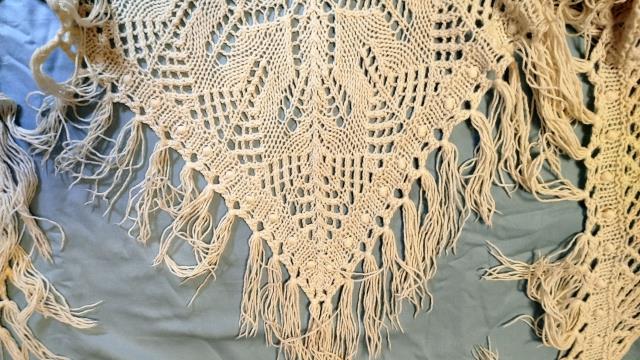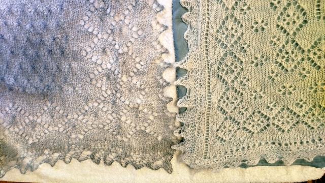 это тоже просто так лежат, серая паутинка - самая легкая. белык платок теплее, беру с собой в поездки как "одеялко". а треугольную шаль из эстонской шерсти мне подарили аж на 40 лет