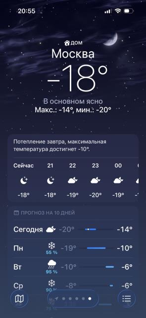 Так Москва большая, новая Москва типа тоже Москва) Я свой район смотрю, мне показывает -14, термометр за окном -15. У меня всегда так, за окном на градус меньше, чем на Яндексе, хоть зимой, хоть летом)