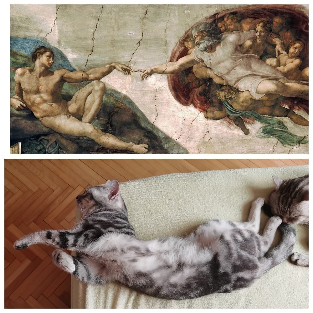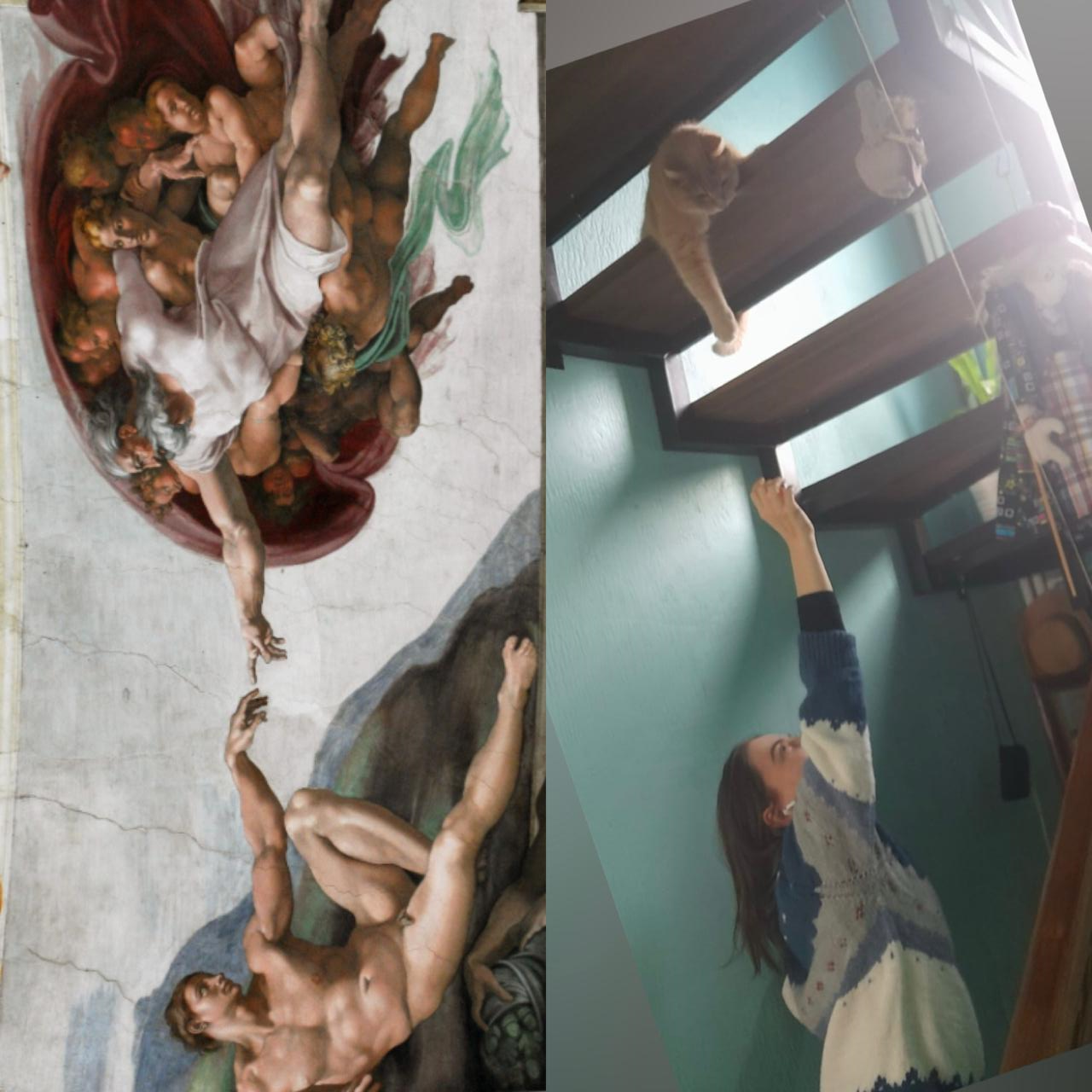 Обнаженка от Микеланджело Буонарроти, лестницу муж доводил до ума, свитерок я вязала, кот Кузя.