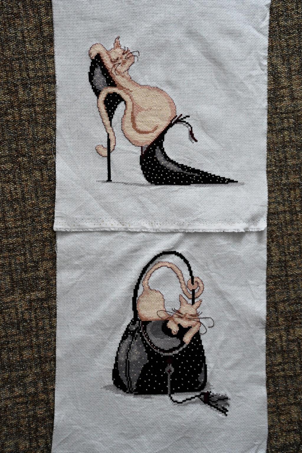 Я стараюсь вышивки, где много бэкстича не брать, не люблю его шить. У меня дорожка с вышитыми котятами лежить лет 10, бэкстич не дошит.