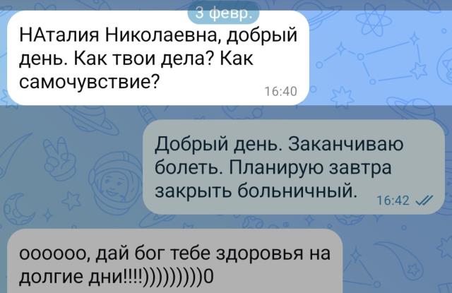 Я тоже накануне не предполагала заболеть. Однако утром приползла в школу, написала задание, распечатала материал и отползла на больничный. 06.02.2026 23:52:13, бим-бом