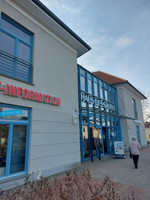 На месте сразу пошли в "Тури-Инфо", Фрошей там повосxищались сотрудницы :-) подарили Фроше наклеечку с гербом города :-)