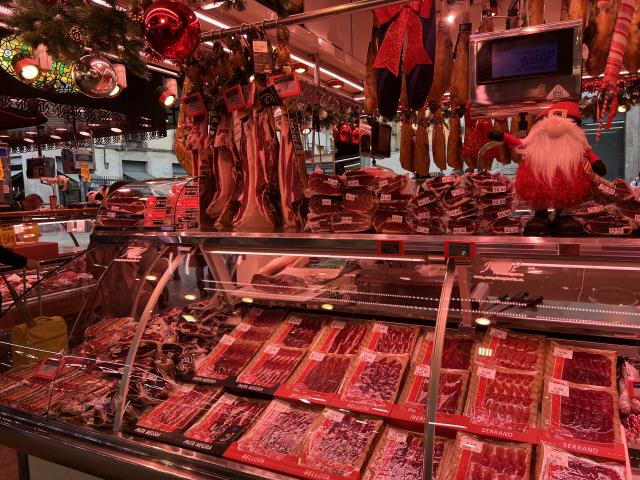а что там особенного?На первом фото один хамон.На втором тоже разложено несколько продуктов,заняли всю витрину одним товаром.Никакого изобилия не вижу.В Метро и то больше
