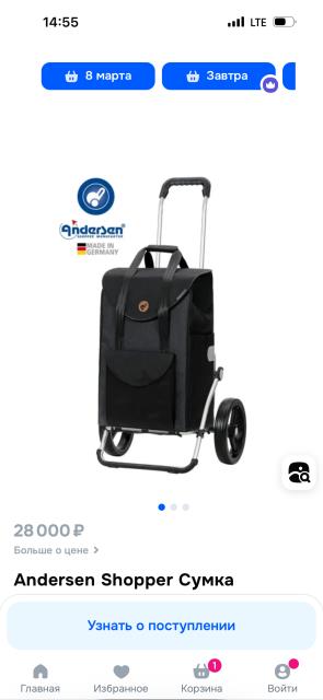 О, я когда-то читала большую тему на Хлебопечке по выбору таких сумок на колесах, маме выбирала. Для мужчины не знаю, но для женщин важно, где ее возить, надо в транспорт с ней карабкаться или нет. Итог- все тележки на 2-х колесах дают большой вес на руку, т е вес все -равно чувствуется. Существуют модели того же Андерсона, ссылку на который ниже дали, на 4-х колесах, тогда она едет как детская коляска, весь вес распределен на колеса, можно везти хоть 1 пальцем. Но чем навороченней сумка, тем она тяжелее, подниматься по ступенькам с ней неудобно (если только она не с 3-мя колесами, которые шагают). Если надо подниматься по ступенькам или дом без лифта, то покупать сумки с большим диаметром колес, чтобы он был выше высоты ступеньки, тогда сумка с наименьшим усилием закатывается на ступеньку. Как-то так.