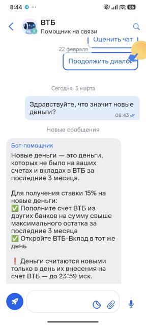 Новые деньги это деньги, которые не были на вкладе долгосрочном. Второй раз новые у меня были только что положенные на карту и с накопительного счета этого банка. Это под больший %. А та же сумма что была на долг вкладе под меньший.