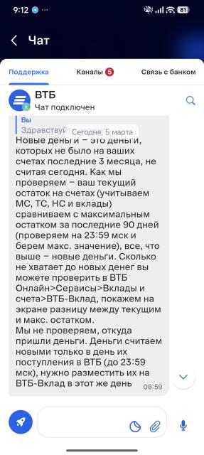 какой хоть банк? разные же критерии. втб раньше писали, сколько нужно денег добавить, чтобы вклад был "на новые деньги". в ноябре вдруг какую-то пургу написали, типа "у вас было ХХ рублей, теперь новые деньги это ХХ+Y". я менеджеру сказала, что у меня никогда не было ХХ, а только Х, но был день закрытия вклада, и система посчитала Х дважды, когда он на вкладе был, и когда на карту перешел. Менеджер сказал, ну вот так считает система. А сейчас они вообще про новые деньги писать перестали
