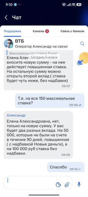 В чате спросила на примере, что было 100, добавили 50. На 50 и будет повышенная ставка, на 100 обычная ставка. Это в ВТБ