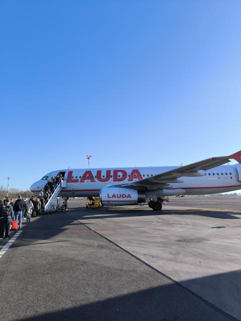 Рейс был компании Ryanair, но сейчас все авиакомпании одалживают друг другу самолеты, и прилетела Lauda, тоже дискаунтер, но австрийский. Я то это знала, а люди на посадку спрашивали друг у друга - а мы точно в Вену летим?:)