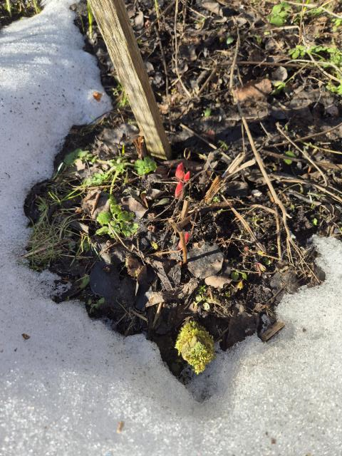 Снег сошел. С северной стороны маааленькая кучка осталась и всё. Но завтра снегопады обещают))