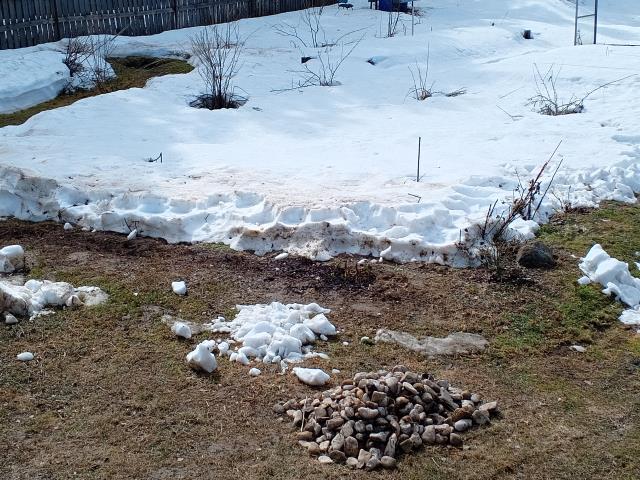 Снег есть, но небольшие кучки. У тех, у кого участки совсем близко к лесу, у тех больше, при том, что в самом лесу уже нет.