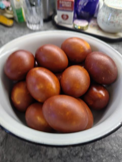 А прямо в шелухе они пятнистые получаются, что тоже красиво. Мне так даже больше нравится, я тоже в шелухе варю.
