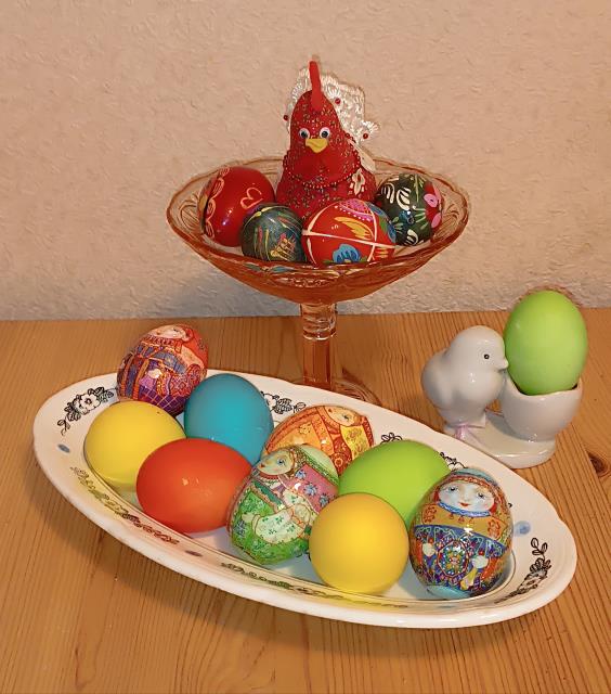 видела много роликов покраской яиц каркаде, шафраном и другими естественными красителями -очень симпатично, но их мне надо покупать так же, как и красители :)