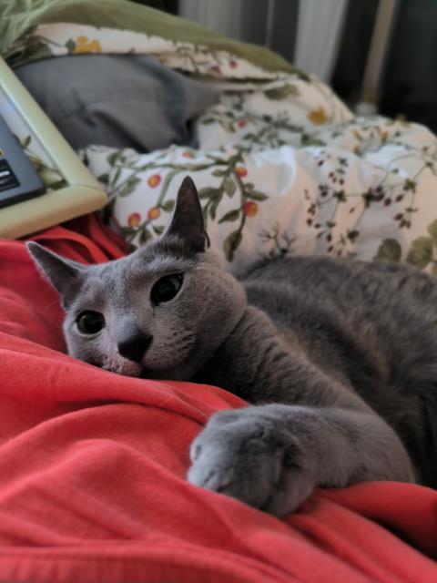 А у нас британка. Считает нас рабами. Даст себя погладить, лишь, когда сама придёт. Не ласковая, требовательная. Любит лишь моего супруга. Но умная и вечерами игривая.